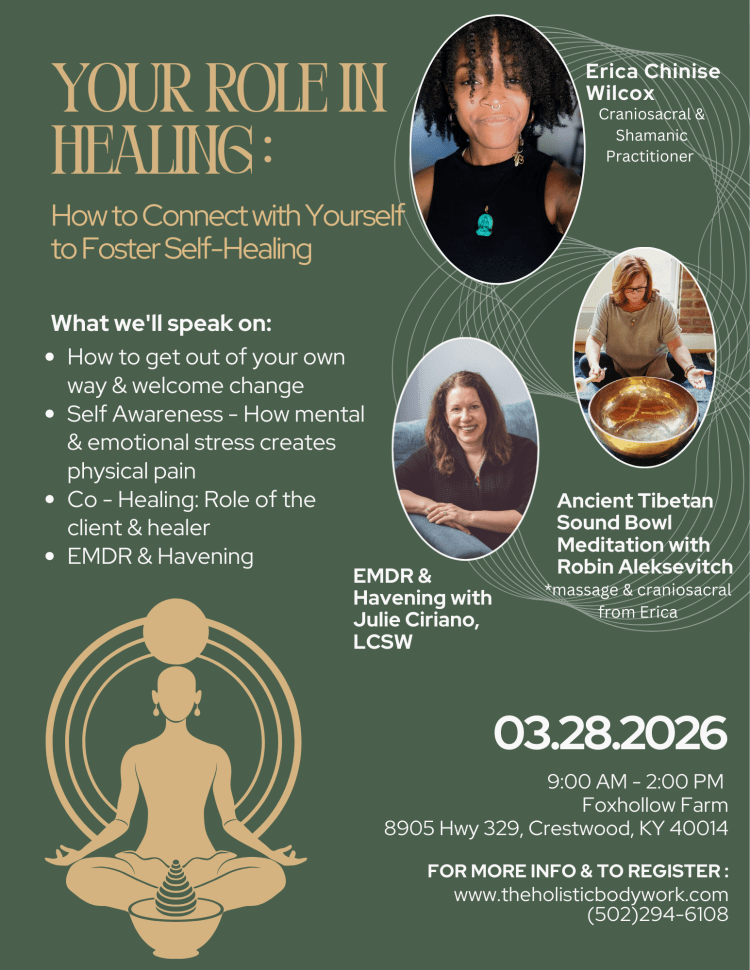 During this class, you will understand your blocks and learn to empower yourself along your journey. Learn about different tools to use on your path for your healing, like craniosacral therapy, EMDR, Havening, Sound Bowls, and other things.